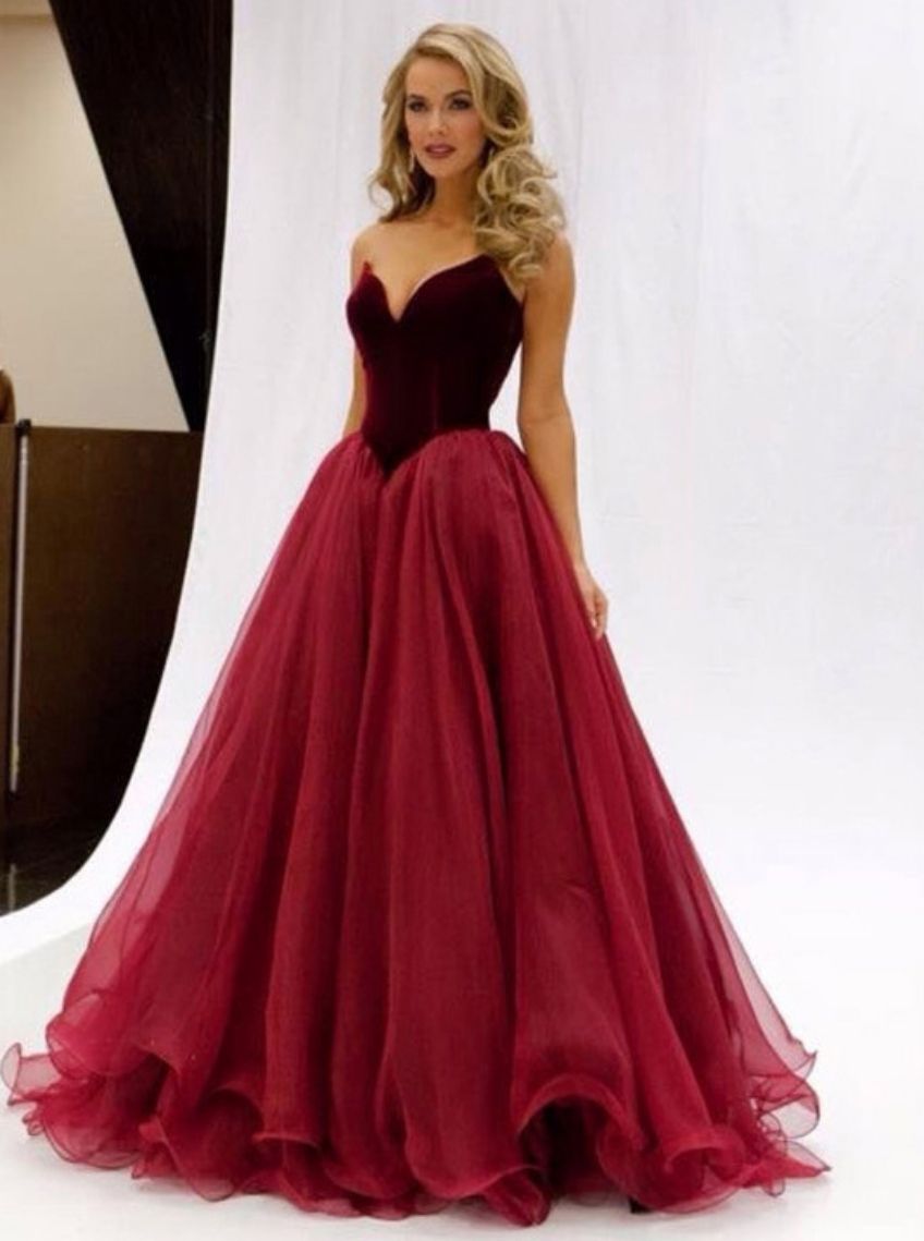 MC065,Ball Gown V-neck Organza Velvet Floor-length Prom Dresses