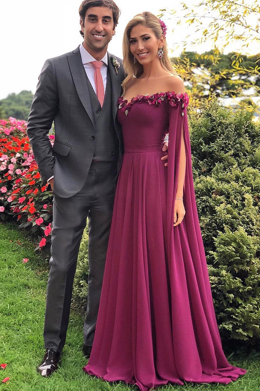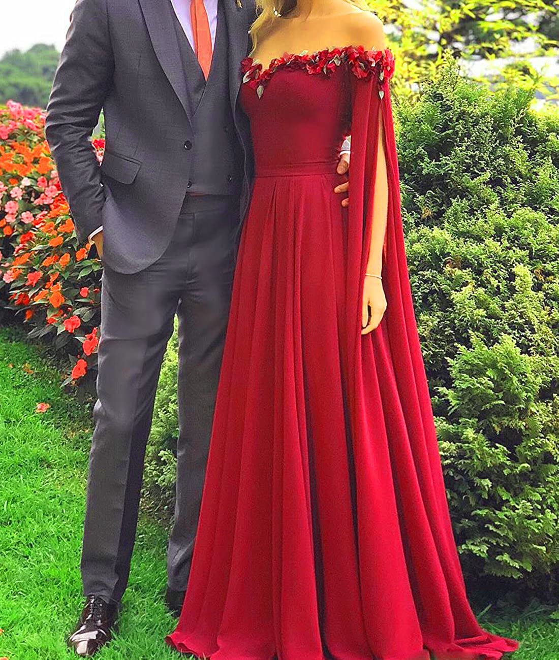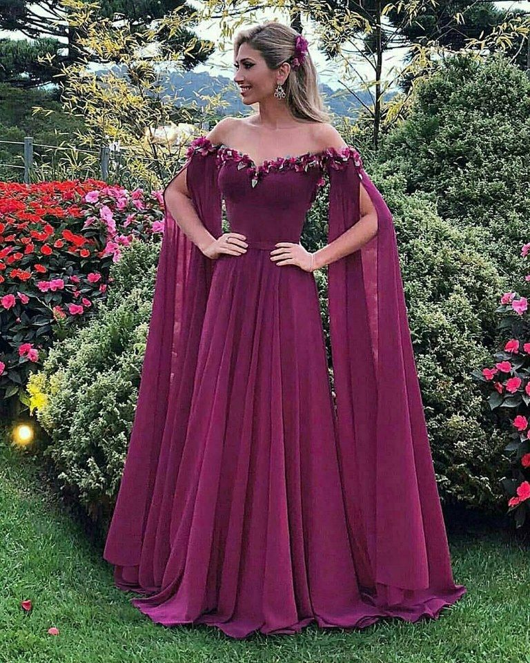 MC066,Off Shoulder Long Sleeves Prom Dress with Appliques,Elegant Formal Gown