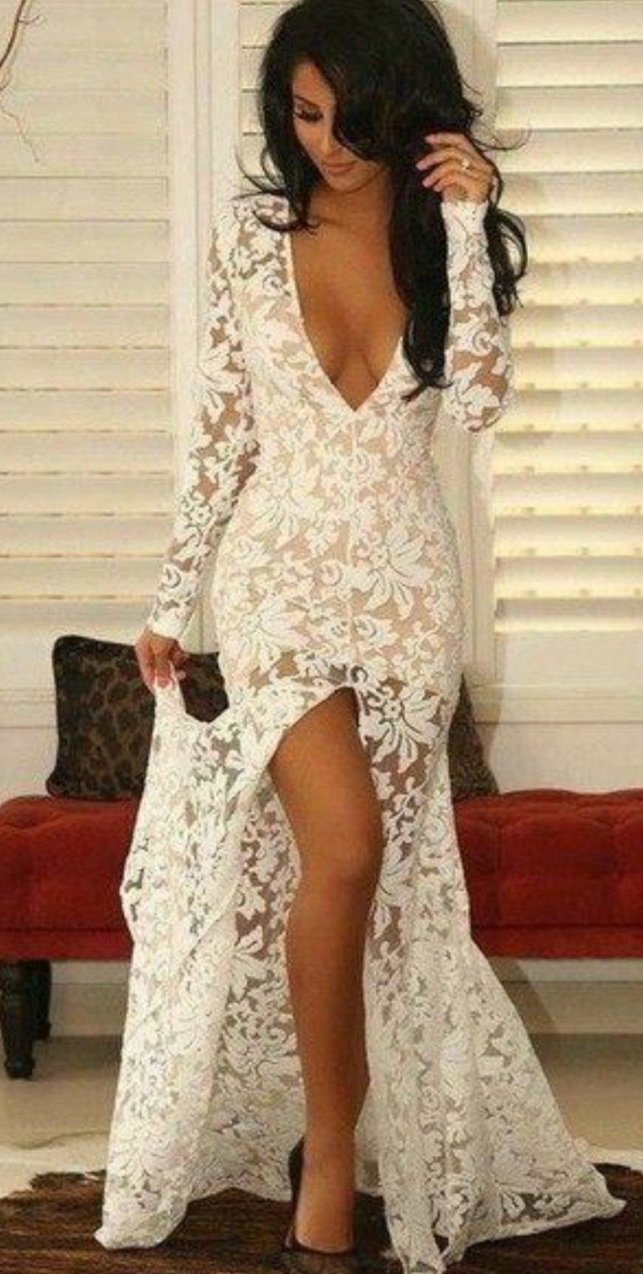MC182,Classic Floral Lace Mermaid Wedding Dresses,White See Through Prom Evening Dresses