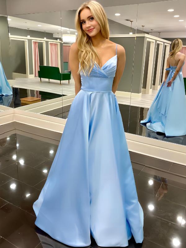 MC200,Sexy Sky Blue A-Line Long Prom Evening Dresses,Satin Party Dresses