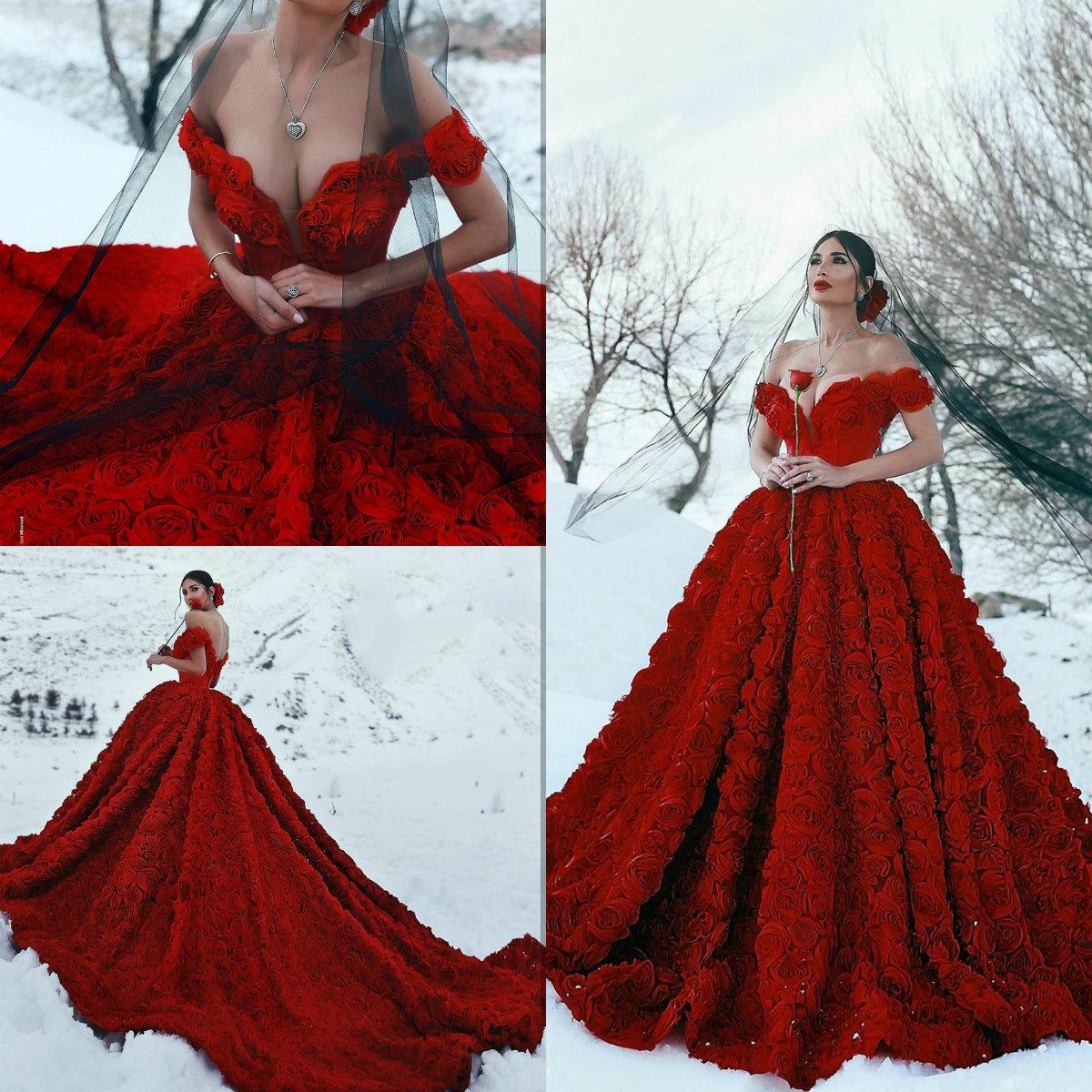 MC051,Red Prom Dresses Rose Ball Gown Wedding Gown Red Wedding Dresses