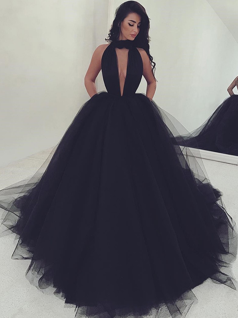 MC064,Ball Gown High Neck Tulle Sweep Train Ruffles Prom Dresses