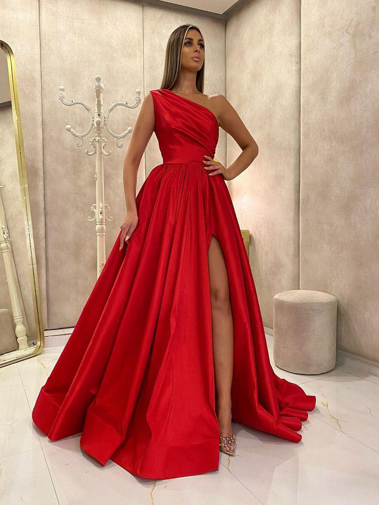 MC068,One shoulder prom dress satin evening dresses a line party dress