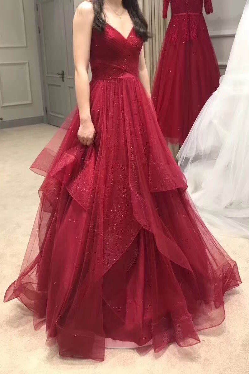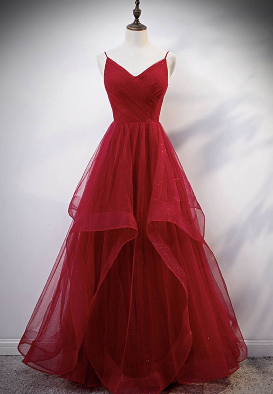 MC088,Fashion Spaghetti Straps Ball Gown Dark Red Prom Dress