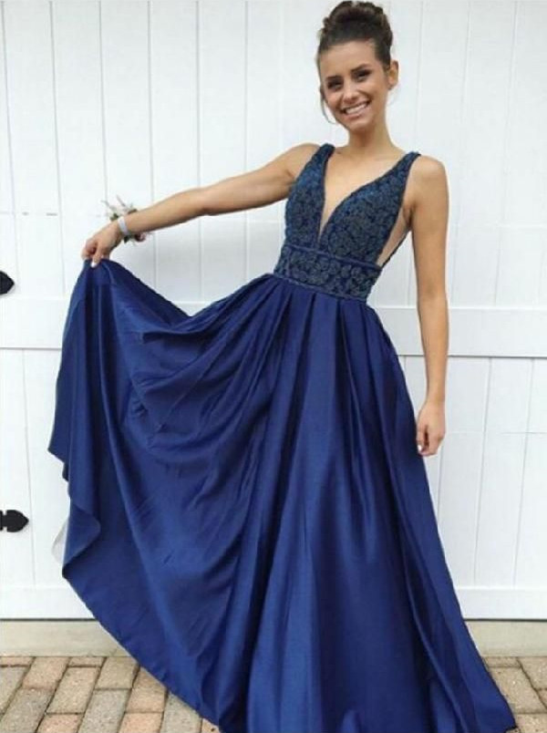 MC120,Navy blue v-neck prom dress a-line dress long dresses