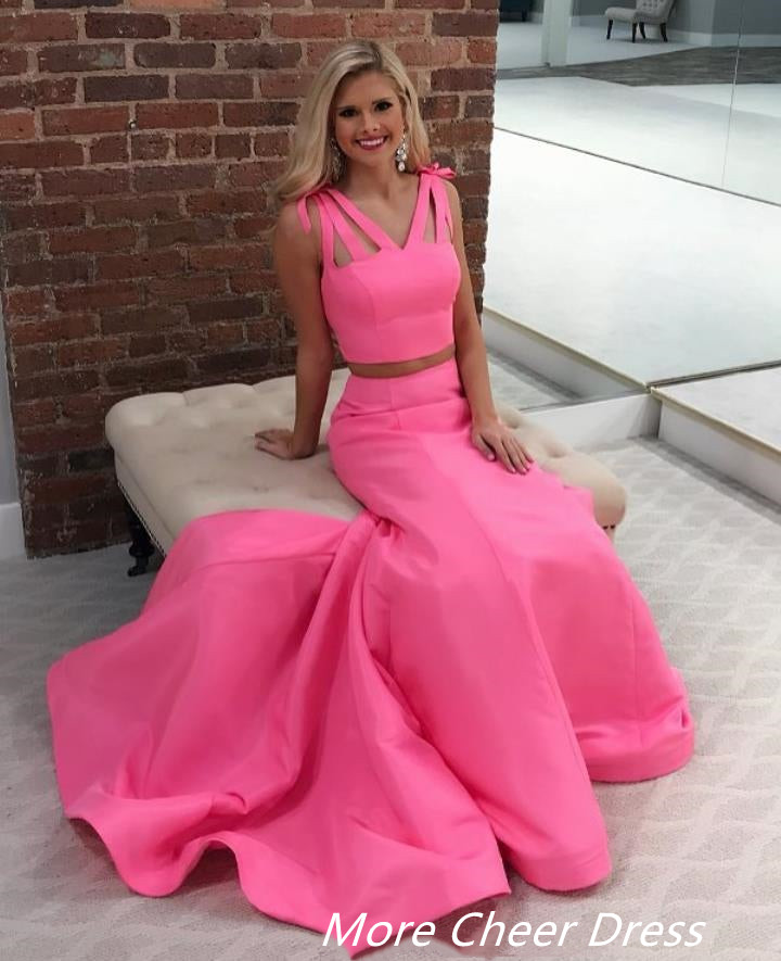 MC147,Two pieces prom dress,pink mermaid evening dresses,satin long prom dresses